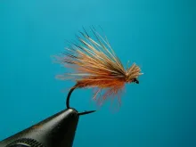 I tie it with red but, cinnamon brown body, 2-3 wraps of Whiting hen and natural elk wing.