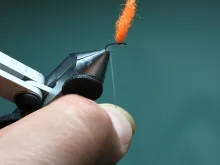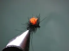 Now palmer the CDC forward and around the parachute post to the eye of the fly and tie off.